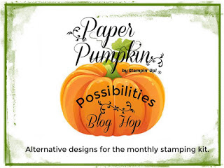 Hello Paper Pumpkin Fans! It's time for our monthly blog hop inspiring you with alternate ideas for the December Kit, Good Things Come in Small Packages. Ya all know how I love to repurpose the negatives, my card today is a 6 x 6 and I used the circle punch out negative as a frame and then a few circle die cuts and a few leftover pieces from the kit.